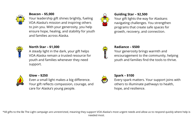 Now, more than ever, Alaska’s youth need champions like you to Be the Light.
